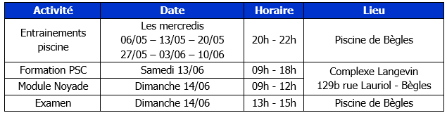 Cette formation s’adresse aux personnes qui souhaitent encadrer la baignade des enfants dans le cadre des accueils collectifs de mineurs (centre de vacances, colonies de vacances, centre de loisir). Les prérequis sont :